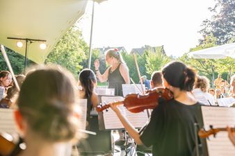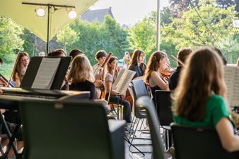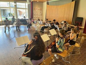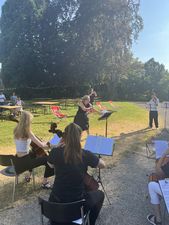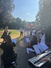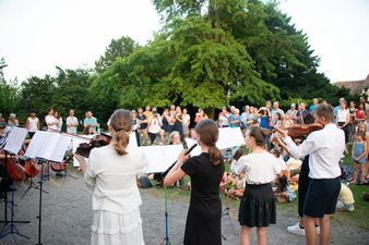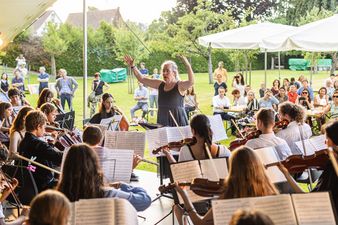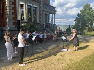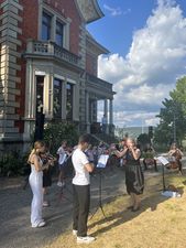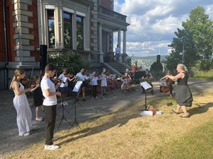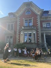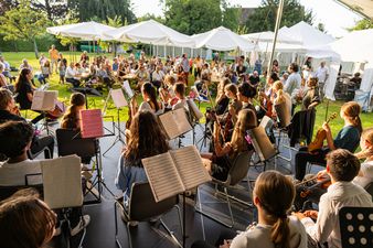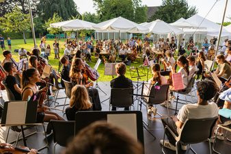 Am vergangenen Freitagabend, dem 28. Juni 2024, spielten Schülerinnen und Schüler der Musikschulen Linker Zürichsee (Musikschulen Adliswil-Langnau, Horgen, Kilchberg-Rüschlikon, Thalwil-Oberrieden und Wädenswil-Richterswil) im grossen Orchester - dem "Seeuferorchester" - unter der Leitung von Maya Wenger im Garten des C. F. Meyer-Hauses. In vielen Zusammenspielstunden haben sich die jungen Musikerinnen und Musiker mit ihren Ensembleleitungen auf dieses Konzert vorbereitet und u.a. Werke von Albert Ketèlbey und Dimitri Shostakowitsch erarbeitet. Das zahlreich erschienene Publikum war sichtlich begeistert. Die Musikschule Kilchberg-Rüschlikon gratuliert allen Beteiligten zu dieser ausserordentlichen Leistung.