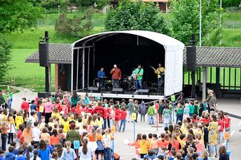 Unter besten Bedingungen konnte die Schulliedband, unter der Leitung von Gabriel Stampli (Schulleiter der Musikschule Kilchberg-Rüschlikon), das Kilchberger Schullied uraufführen.