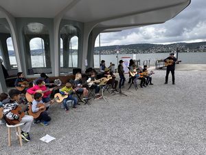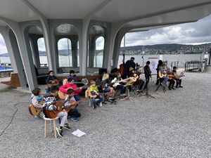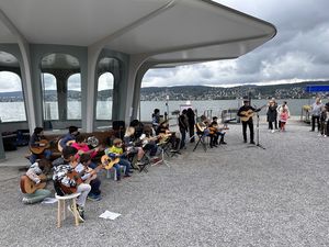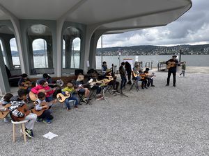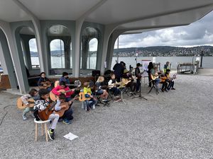 Am Sonntag, 14. Mai 2023 um 11:00 Uhr, spielten Schülerinnen und Schüler der Gitarrenklasse von Peter Townsend zum zweiten Mal ein Muttertagskonzert im Wartehäuschen am Schiffsteg in Rüschlikon.