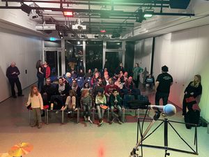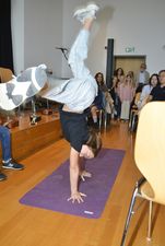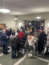 Bereits begeistert von den stimmungsvollen Fiedelklängen, wurden die gut 150 Besucherinnen und Besucher in der zweiten Hälfte der Veranstaltung dann erst richtig überrascht. Angeleitet von Andrea Schmid, dem Namhaften Musiker und Tänzer aus der Schweizer Volksmusikszene, wurde auf der Tanzfläche und begleitet vom Fiedelorchester gemeinsam das Tanzbein geschwungen.