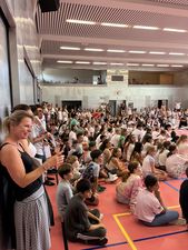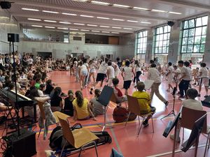 Am Montagmorgen, 10. Juli fand das Abschlusskonzert des Klassenmusizierens in der Turnhalle des Gemeindeschulhauses in Kilchberg statt. Die Musikklassen wussten das Publikum mit groovigen Rhythmen, schwungvollen Choreographien und guter Musik zu begeistern.