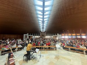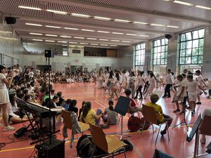 Die Stimmung auf dem Schulareal Brunnenmoos war ausgelassen und "stimmgewaltig". So schwebten die Klänge, laut Gabriel Stampfli, über das Seebecken auf das andere Seeufer. Im Anschluss an die Veranstaltung durften alle Mitwirkenden eine Rose in Empfang nehmen, wie dies bei einer Uraufführung üblich ist.