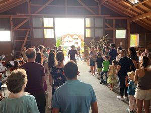 Am ersten Samstagnachmittag nach den Sommerferien, am 27. August 2022, fand in der Scheune des Stockenguts in Kilchberg erneut ein Fiedelfest statt. Unter der Leitung von Maya Wenger spielten insgesamt 55 Streicherinnen und Streicher, unterstützt von Bläsern, Klavier und Gitarre schwungvolle irische Volksmusik.