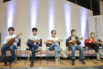 Ukulelen-Ensemble: Linus Fessler (Leitung), Dora Subasi, Louise Herzig, Joshua Geldart-Eden, Cato Kuan, Angelina Struller