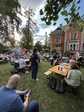 Am vergangenen Mittwoch, dem 02. Juli 2025, begeistere die Schlagzeugklasse von Francesco Gasparini das zahlreich erschienene Publikum im Park des C. F. Meyer-Hauses mit Songs von Toto, Jimi Hendrix, Bruno Mars und weiteren Künstlern.