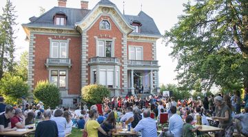 Es spielen die Schülerinnen und Schüler der Musikschule Kilchberg-Rüschlikon im Garten der Villa Schellergut.